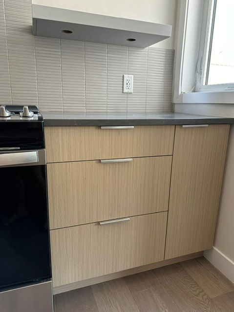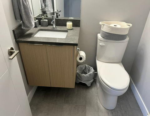 Quartz countertops in kitchen and baths with contemporary undermount sinks